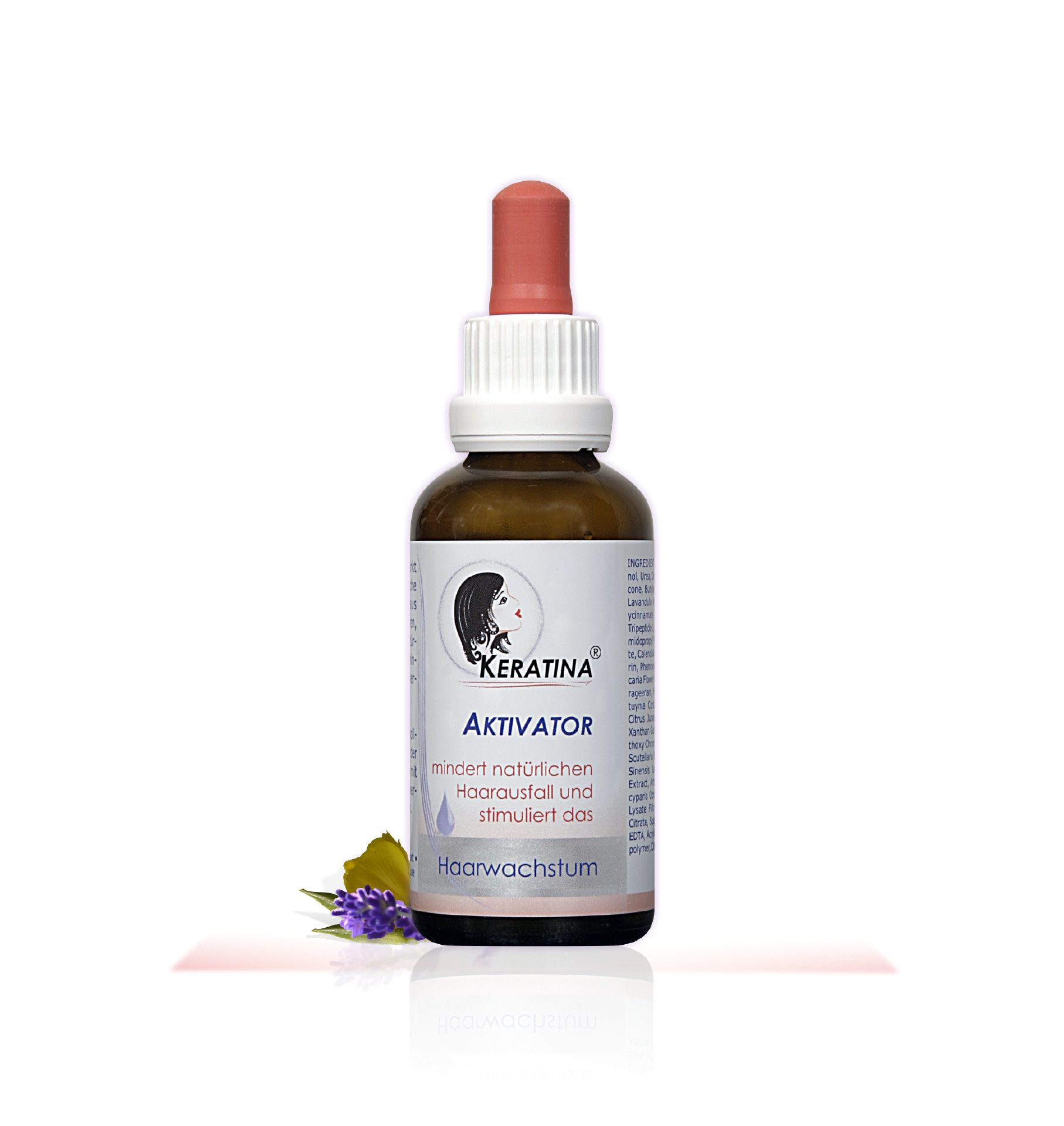 Der KERATINA – Aktivator enthält neuartige Wirkkomplexe, die in einer Kombination aus Naturextrakten, Aminosäuren, Peptiden und Proteinen auf der Kopfhaut wirken. Entzündungen der Kopfhaut und der Haarausfall gehen zurück, die Haarwurzeln werden durch die neuartige Formel aktiviert. In der Folge erholt sich die Kopfhaut, und die Haare wachsen wieder vermehrt und kräftiger; insbesondere dort, wo vor Kurzem die Haare ausfielen. Die Effekte sind positiv getestet.